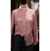 Cette chemise cintrée rose rehaussée de rayures blanches, vous offrira un look frai et féminin. (le mannequin porte un 38)